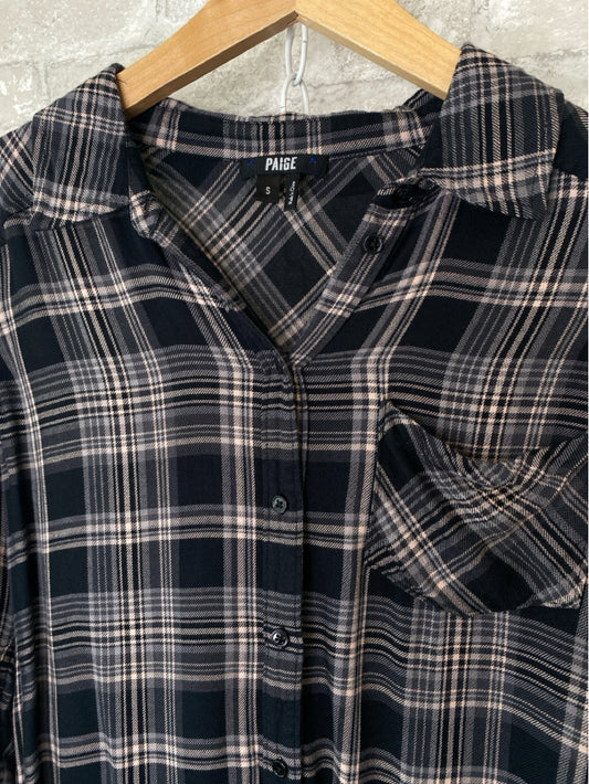 Paige Size S Black/Grey/Blush Button Down