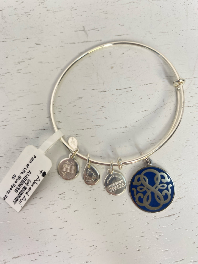 NEW with tags, path of life Alex & Ani charm bracelet made with sterling silver and blue epoxy.