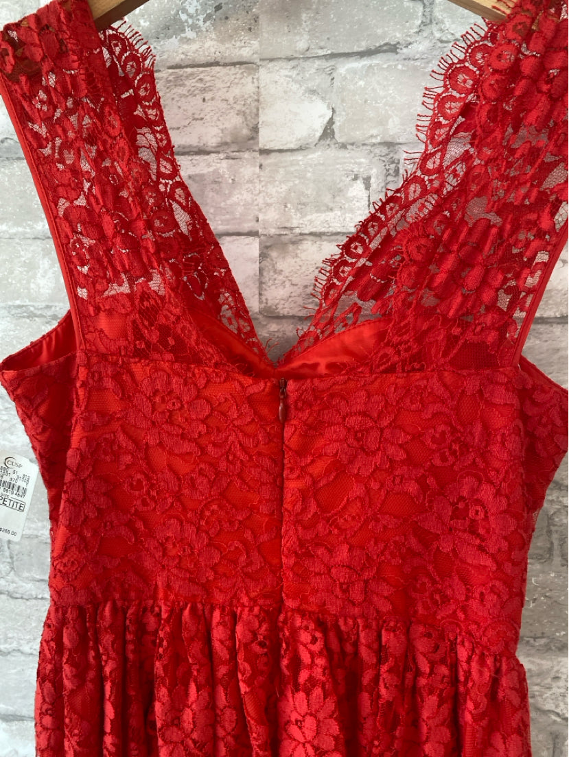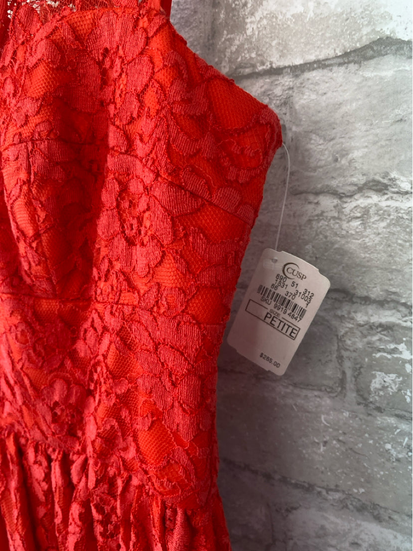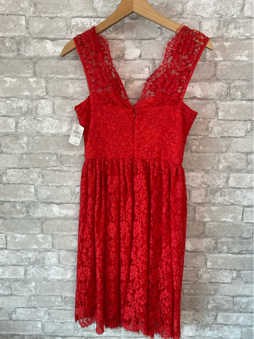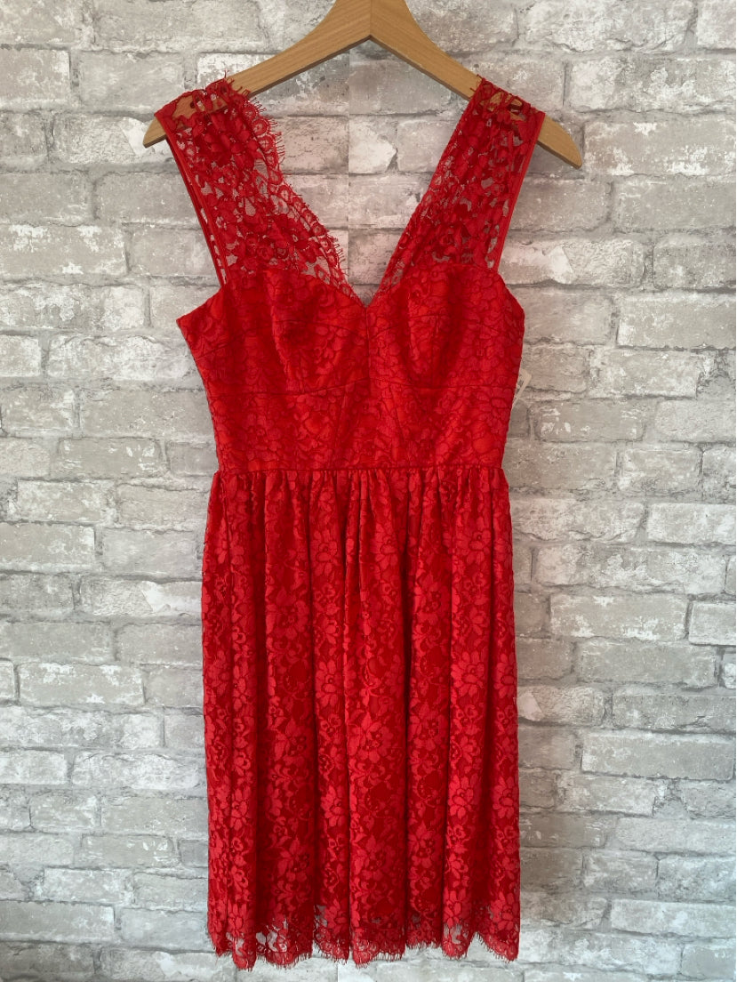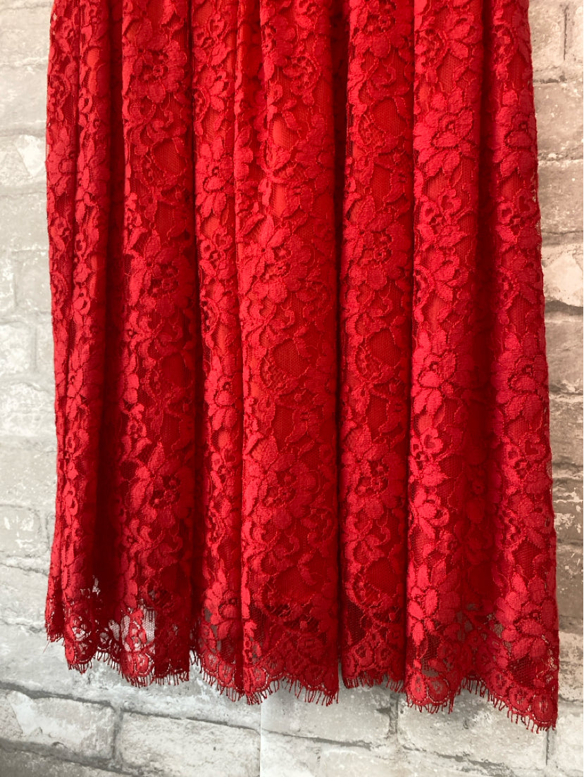 NEVER WORN A bright poppy hue and scalloped trim. Lace with tonal underlay. Scalloped, sweetheart neckline.
