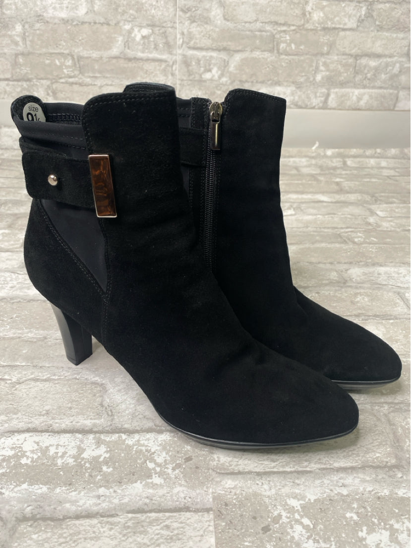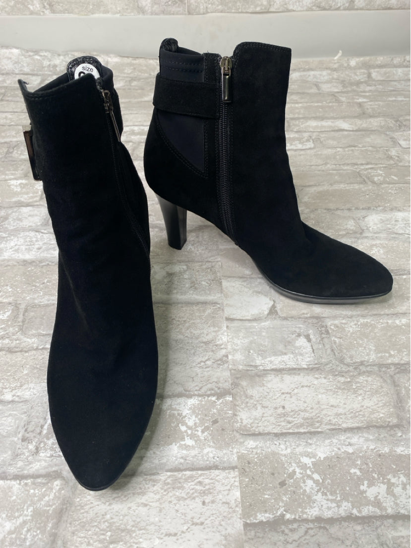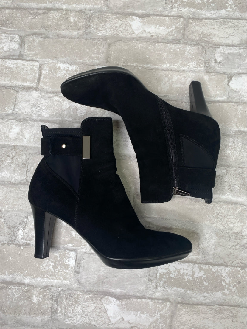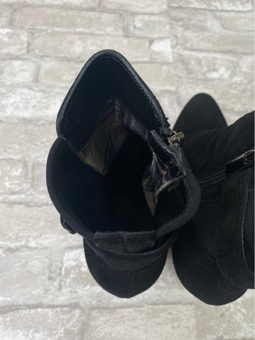 Aquatalia's Marvin K. Rouge boots were renamed Royal Boots in honor of Kate Middleton wearing them to her first royal duty. Silvertone hardware details with an elastic insert at the side. Slip resistant rubber sole, side zip closure, padded footbed. Heel