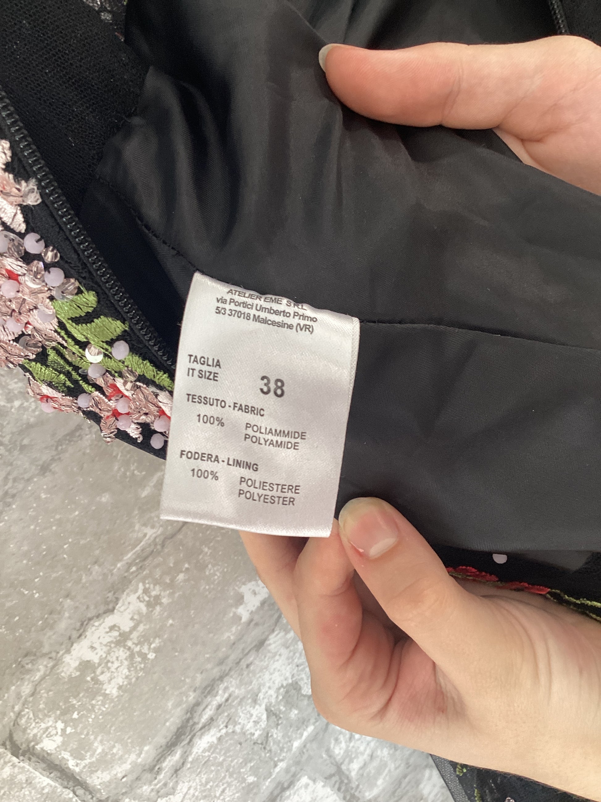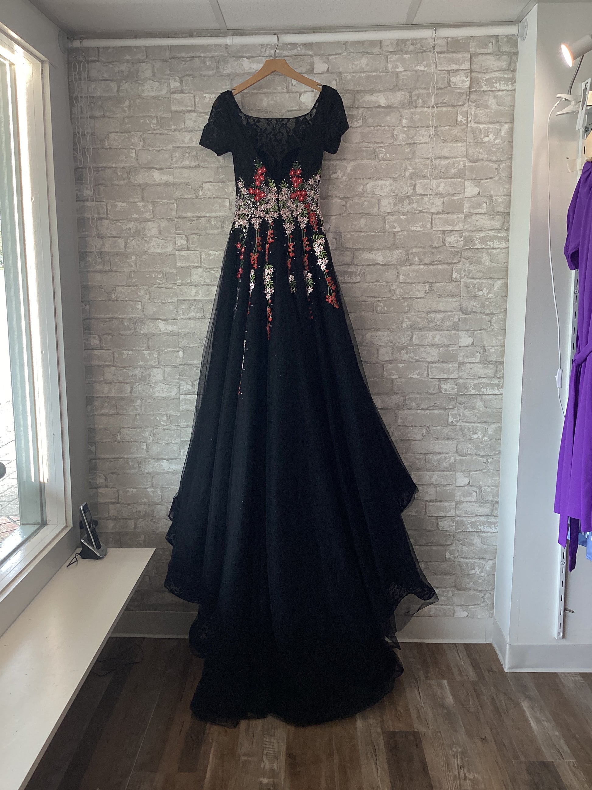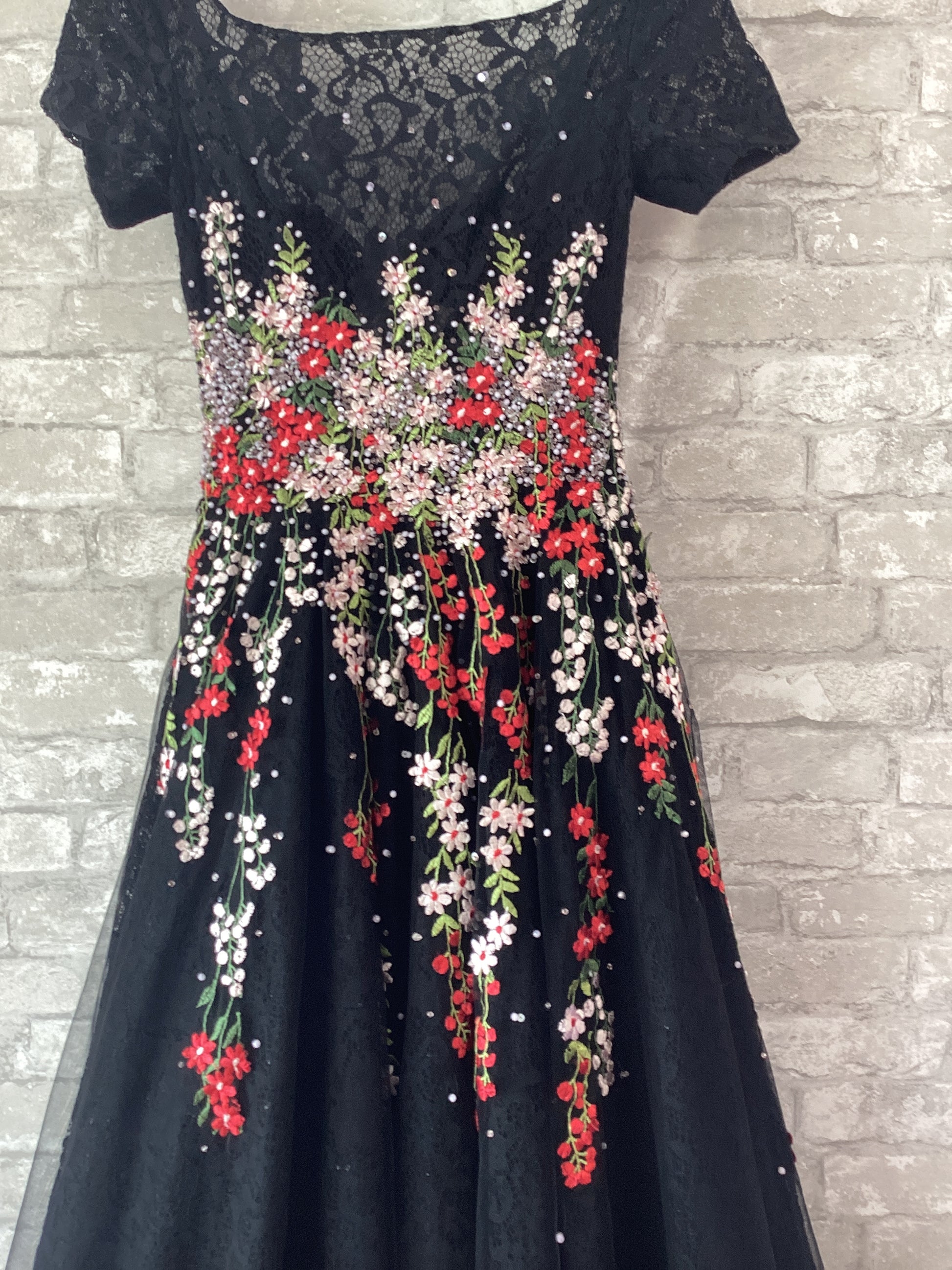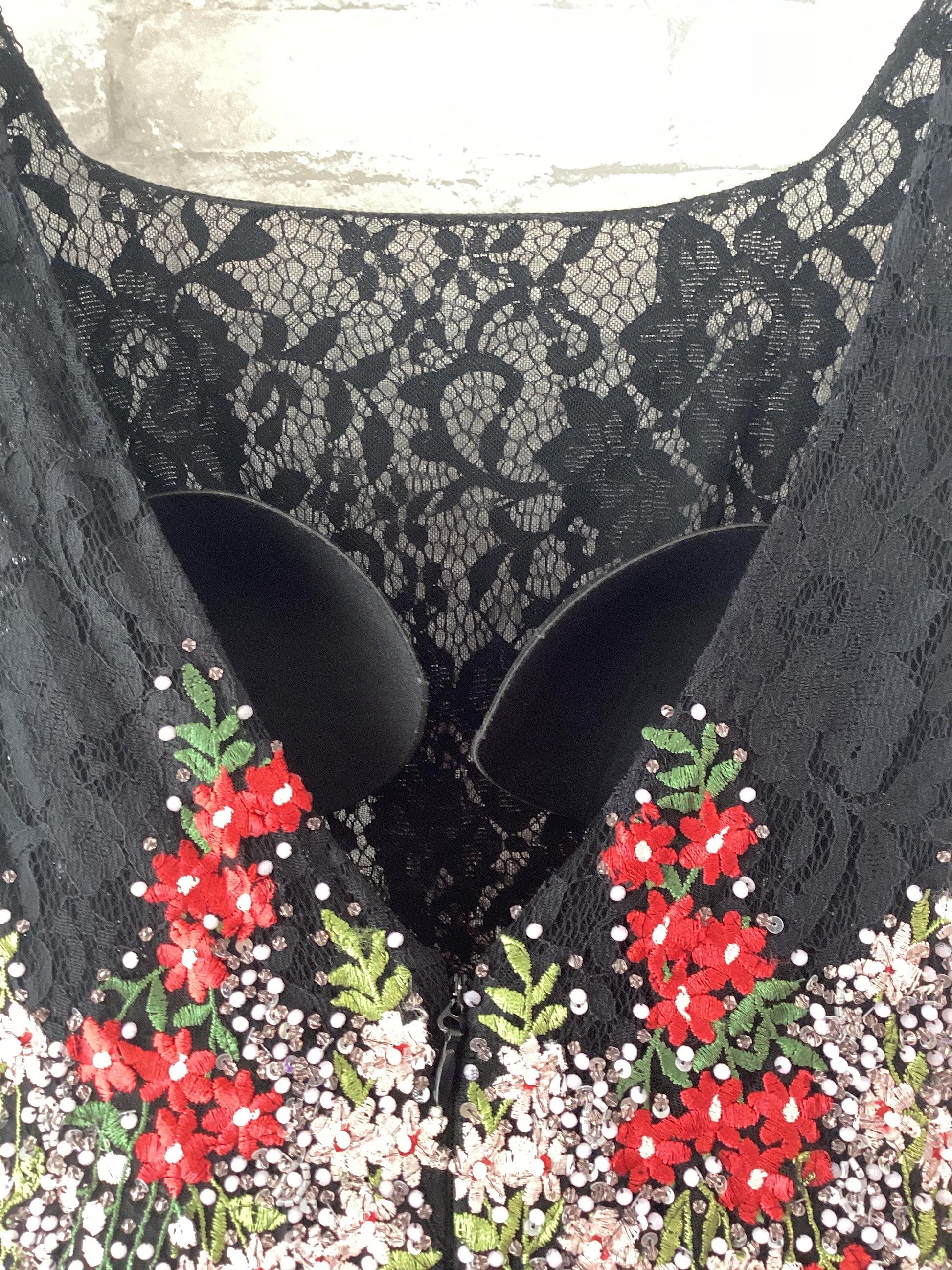 Tulle over lace floral embroidered plus train. Absolutely gorgeous. Pit to pit = 14"