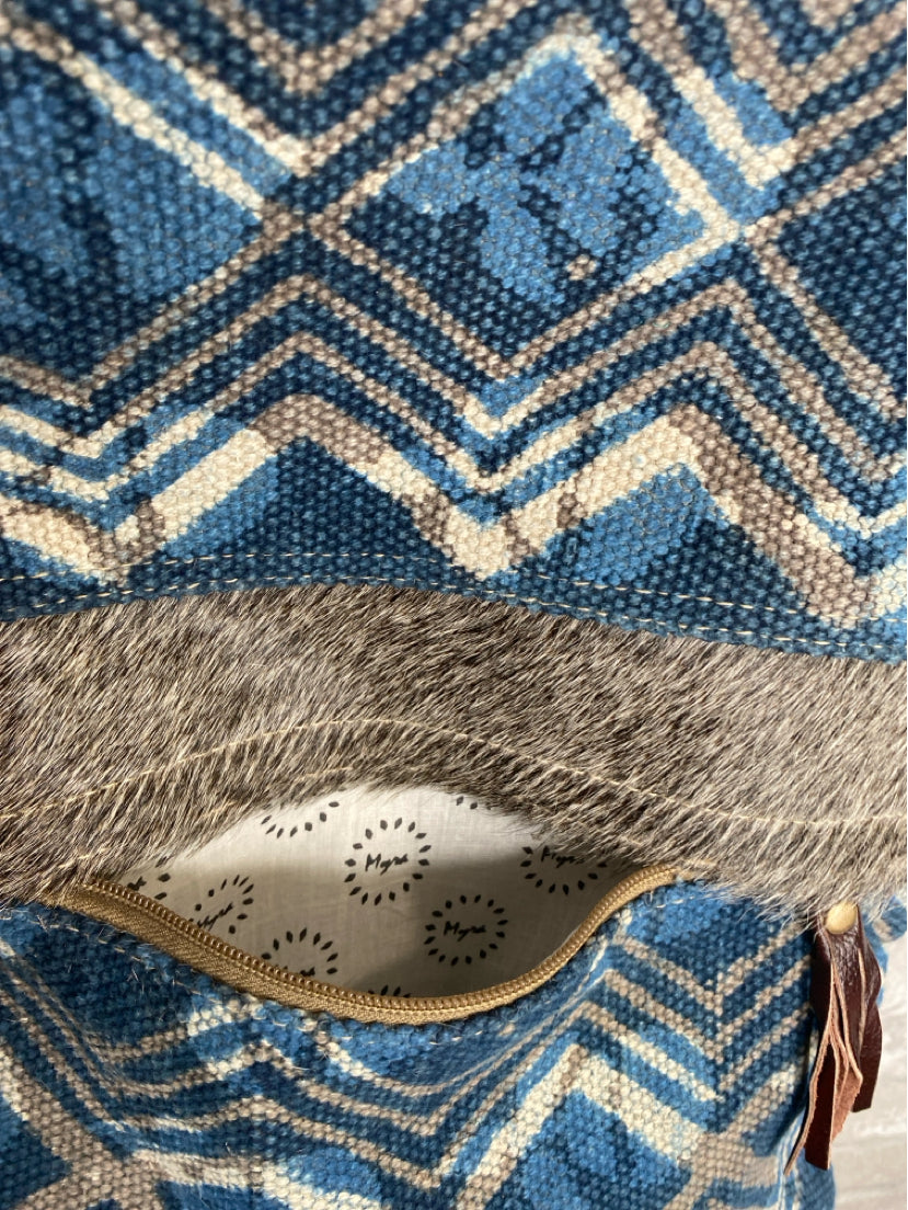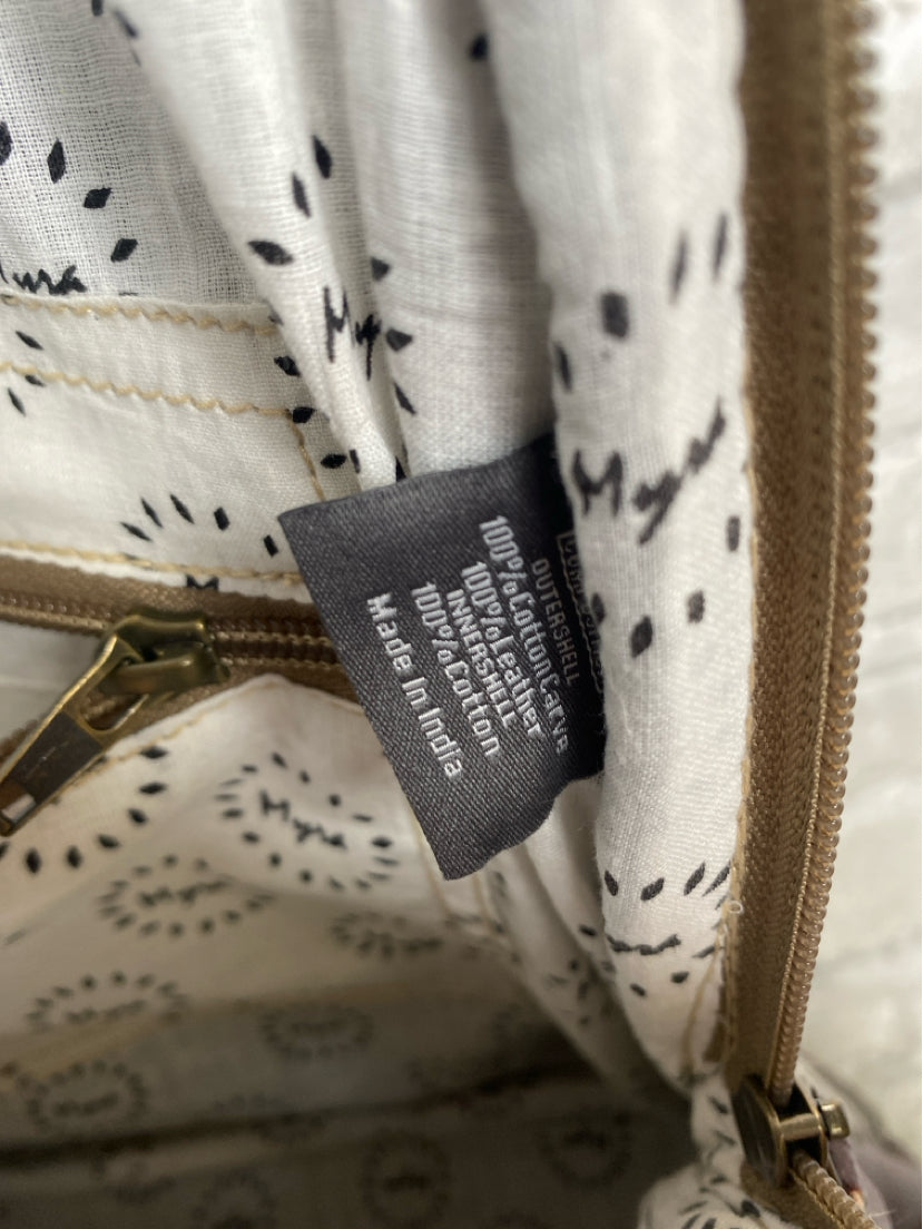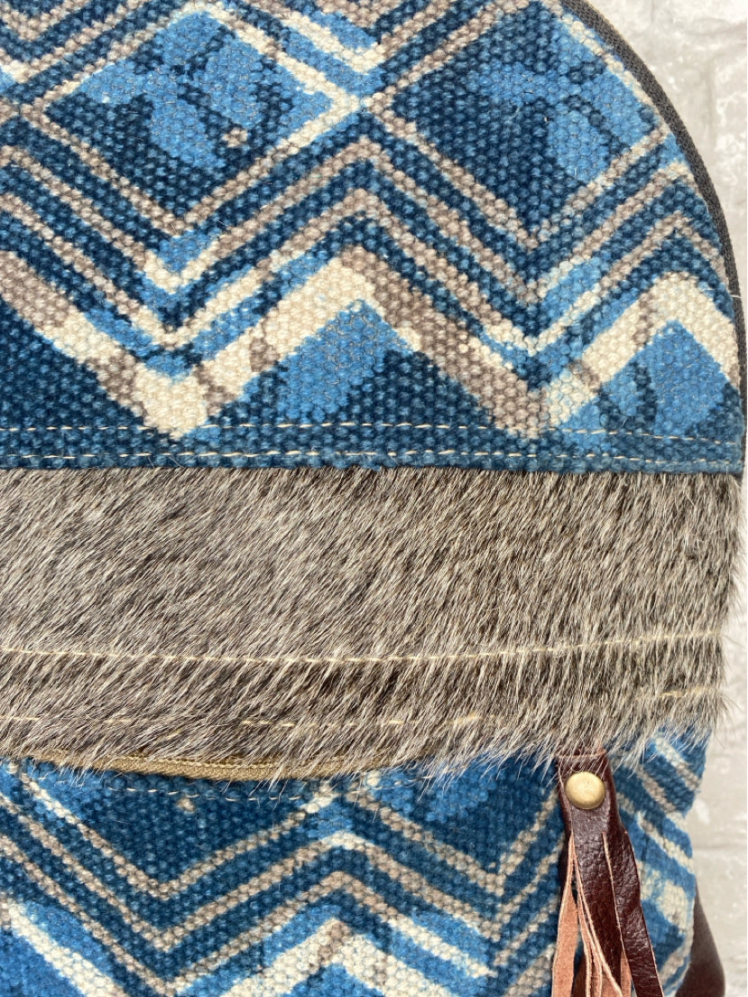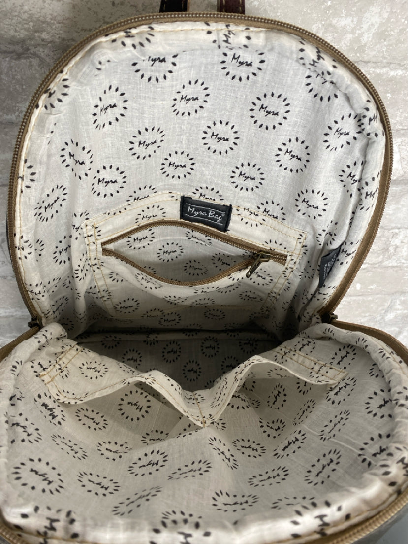 NEW Myra Blue breeze backpack. Stylish as well as functional. Natural vegatable tanning processes and handcrafted from recycled military tents. Dimensions 12.5" (W) x 14.5" (H) x 4" (D)