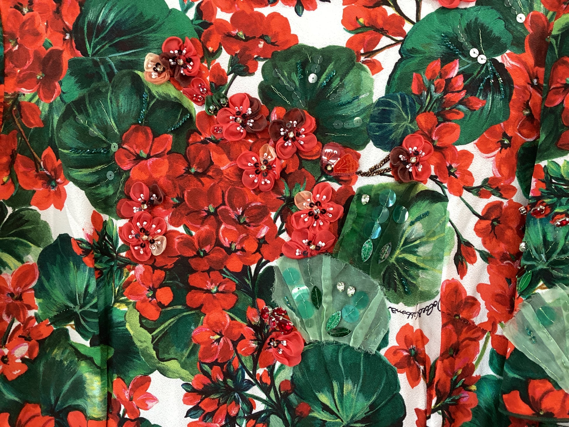 Stunning Signature Dolce & Gabbana floral flutter sleeve embellished dress. Hidden back zipper with flounce hem. Aprox Flat MSMTS pit -pit 15.5" waist 13" hips 16" shoulder to hem 47" Italian size 40