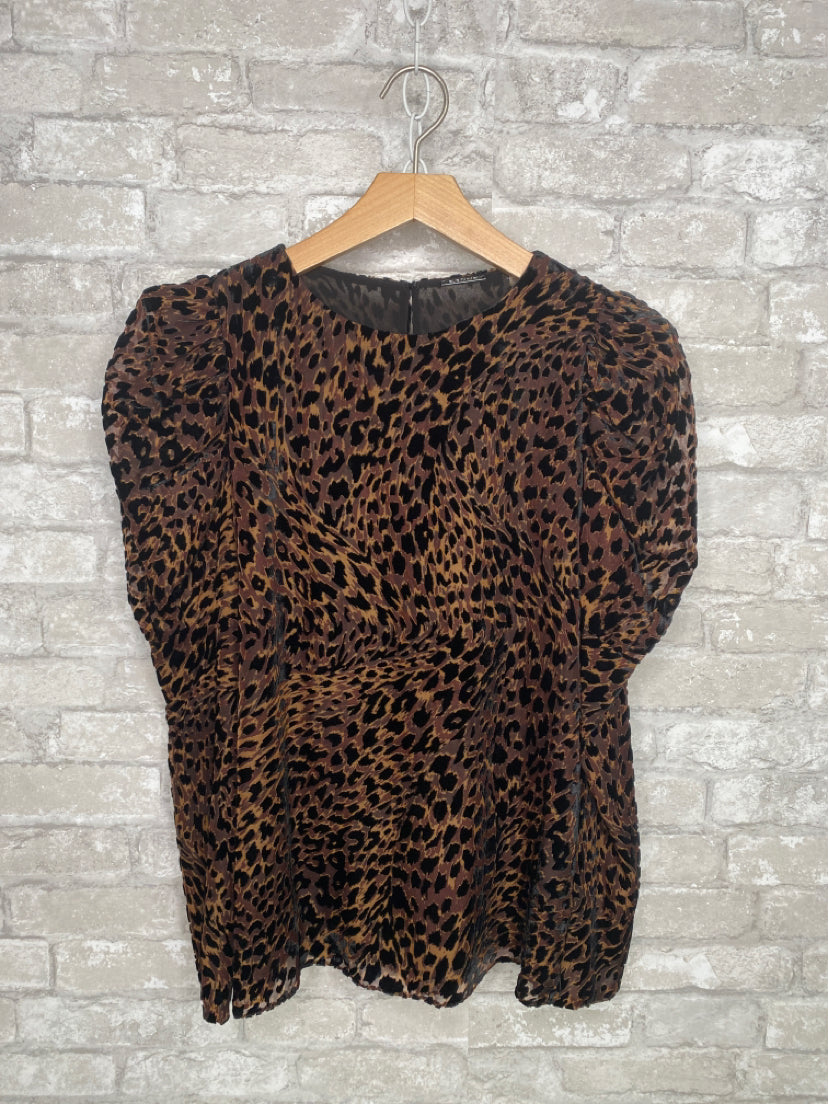 NEW Noelle Blouse. Gorgeous puff sleeve leopard print velvet accents fully lined. Approx MSMTS Underarm Underarm 17" Neck to Hem 24"