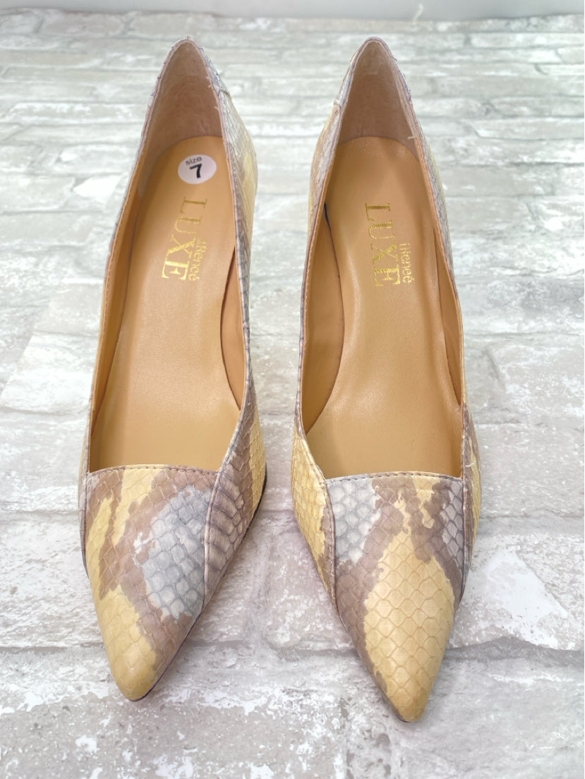 J Renee Size 7 Cream/Taupe/Grey Heels