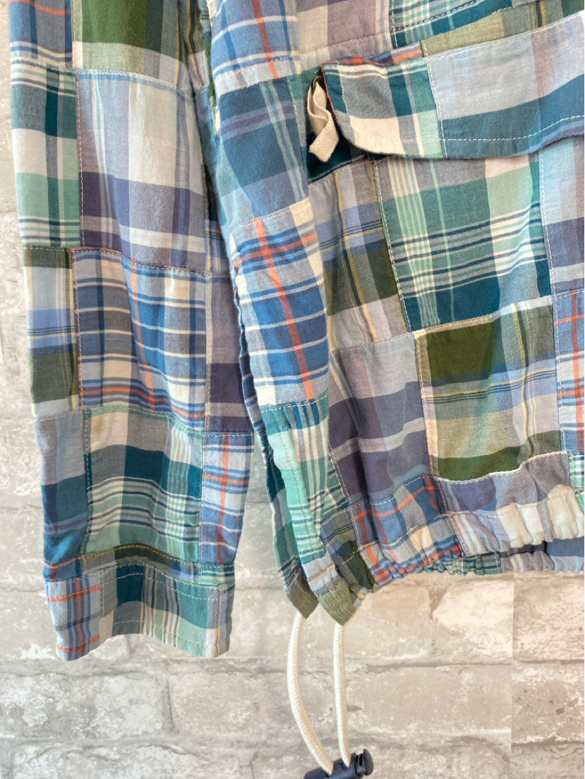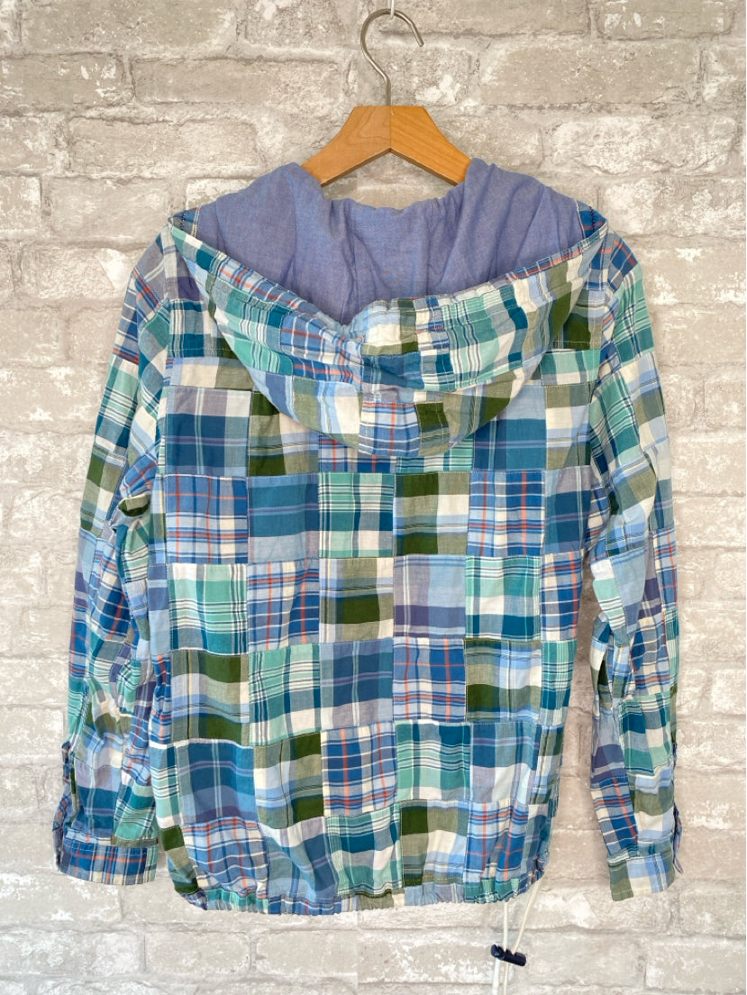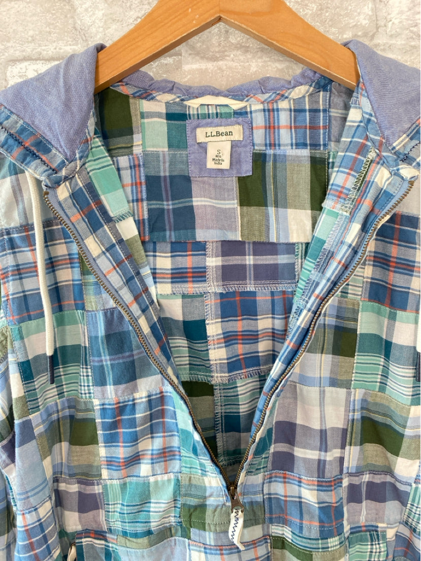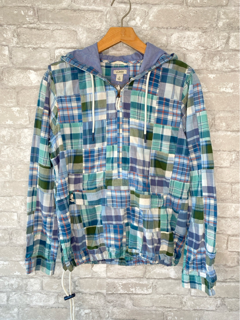 Vintage LL Bean patchwork madras pullover hooded 3/4 zip jacket. 100% COTTON shoulder to hem 25"