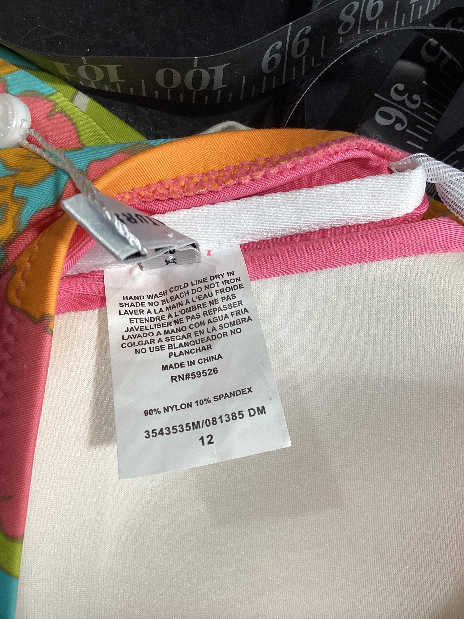NWT Trina Turk Size L/12 orange/aqua/white 2 Pc Swimsuit