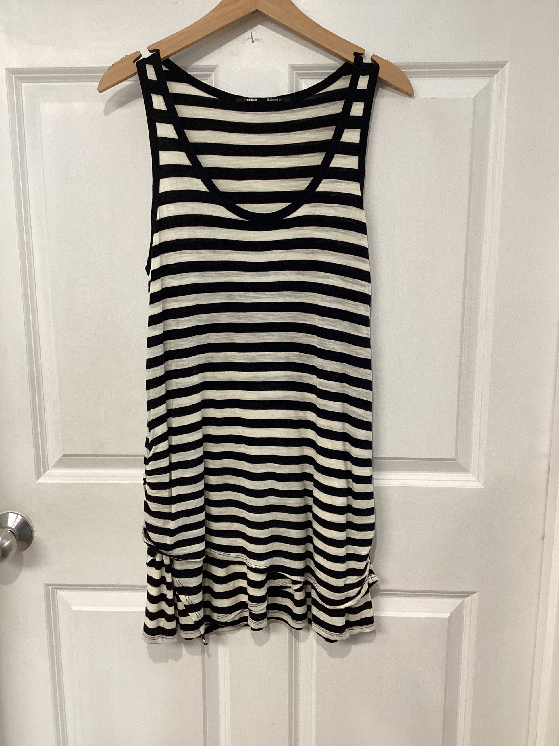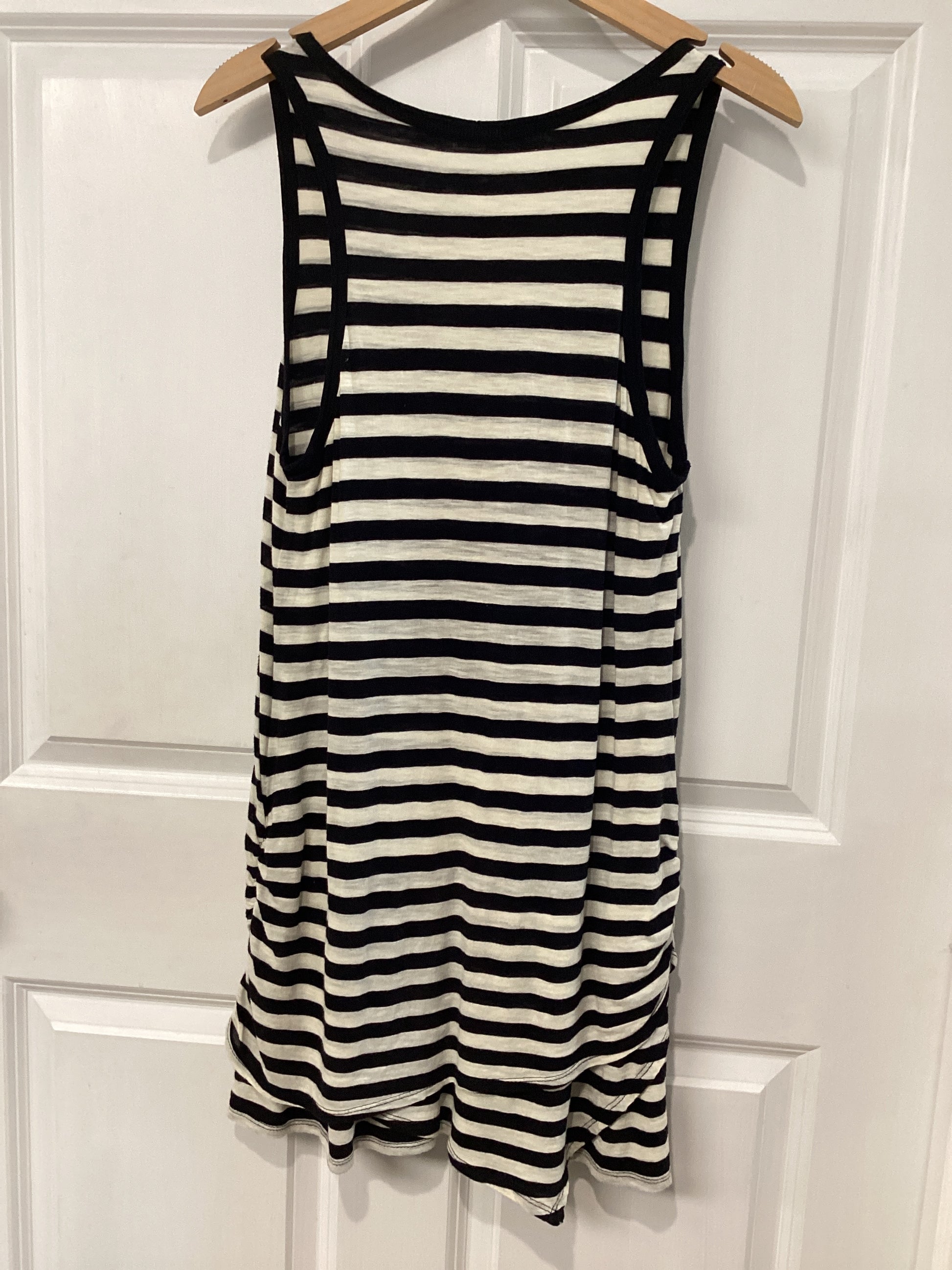 Tank Stripe Mini Cotton Jersey Stretch Dress. Approx Falt MSMTS pit-pit 14.5" shoulder to hem 33"